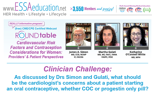 As discussed by Drs Simon and Gulati, what should be the cardiologist\'s concerns about a patient starting an oral contraceptive, whether COC or progestin only pill?