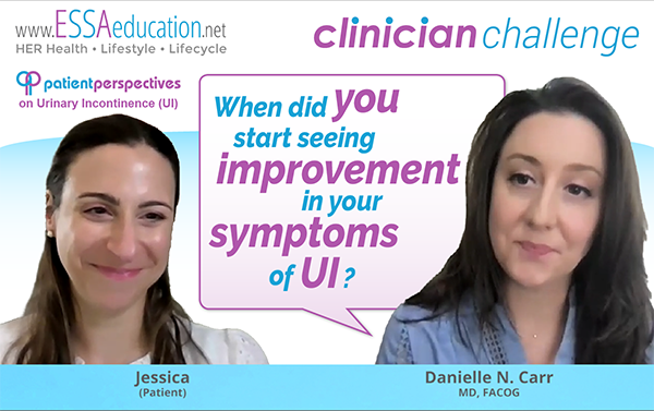 How soon after starting to use the Leva Pelvic Health System consistently did Jessica, Dr Carr\'s urinary incontinence (UI) patient, notice improvement? How long until her symptoms were gone?